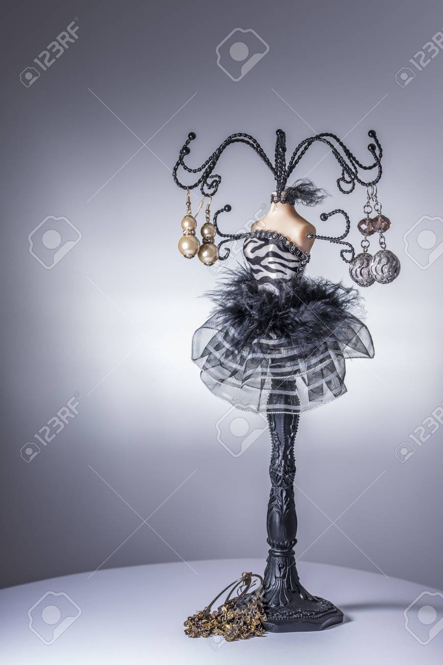 Presentoir De Bijoux Noir Cintre Sous Forme D Un Buste D Une Femme En Robe Noire Et Blanche Avec Des Bras Metalliques Comme Supports Banque D Images Et Photos Libres De Droits Image 69501373