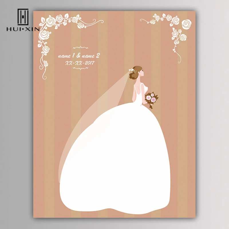 Belle Mariee Portant Une Robe De Mariee En Fond Rose Nom Gratuit Date Empreinte Digitale Bricolage Livre D Or Pour Fiancailles Fete De Mariage Aliexpress
