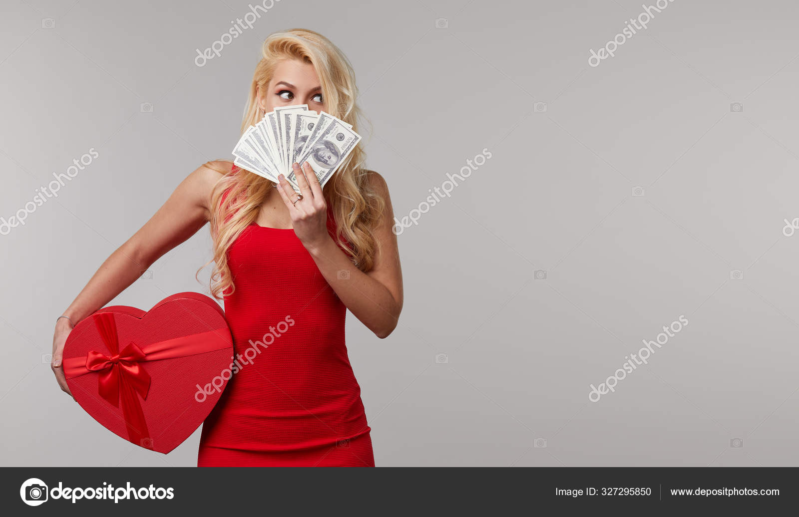Happy Woman Tenant Une Boite Cadeau Rouge Avec De L Argent Photographie Oestyle Gmail Com C 327295850