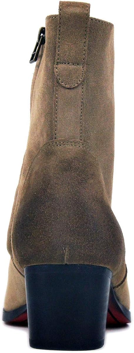 Bottines Pour Hommes Faites A La Main En Cuir De Veau Beige Avec Fermeture Eclair Laterale Couleur Marron Pointures Chaussures Homme 40