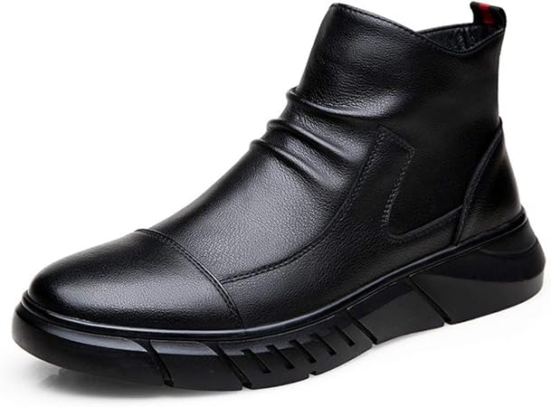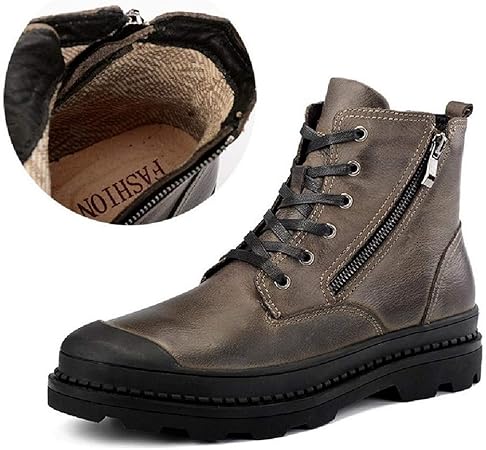 Suiyouyu Bottes D Hiver D Homme Bottes De Combat For Hommes Bottines A Enfiler A Glissiere Laterale En Cuir Veritable Chaud Rides Anti Slip Cap Toe Chaud Plat Super Soft Amazon Fr Cuisine Maison