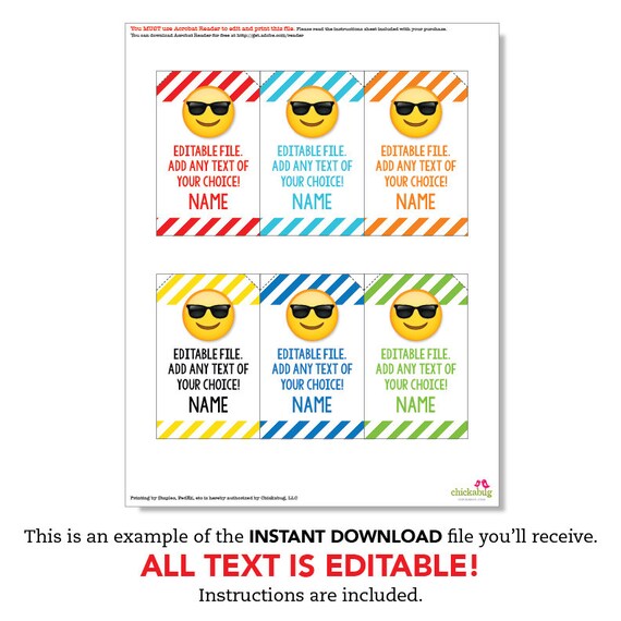 Editable Instant Download Sunglasses Smile Emoji Party Favor Etsy