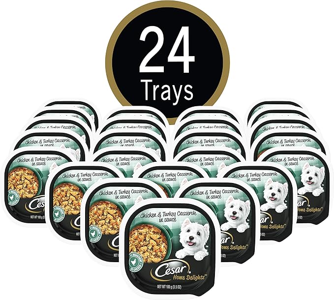 Cesar Home Delights Soft Wet Dog Food Chicken Turkey Casserole In Sauce 24 3 5 Oz Easy Peel Trays Pet Supplies Amazon Com