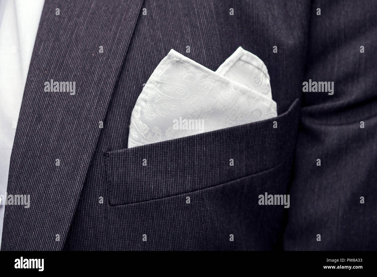 Vue De L Homme Poche De Manteau Avec Un Carre Blanc Costume Pour Hommes Accessoires Sa Tenue Vestimentaire Masculin Invite De Mariage Style De Mariage Des Hommes Diner Officiel Outfit Photo Stock