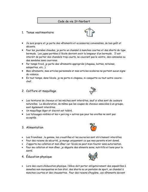 Code De Vie St Norbert 1 Tenue Vestimentaire 2 Coiffure Et