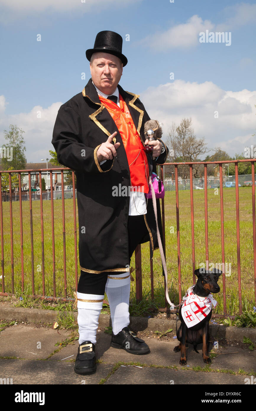 Les Animaux Dans Les Vetements Dorloter Les Animaux Portant Manteau Chien Patriotique A Manchester Uk 27 Avril 2014 Poil Lisse Et Brun Noir Sur Le Chien De Terrier De Mars Avec