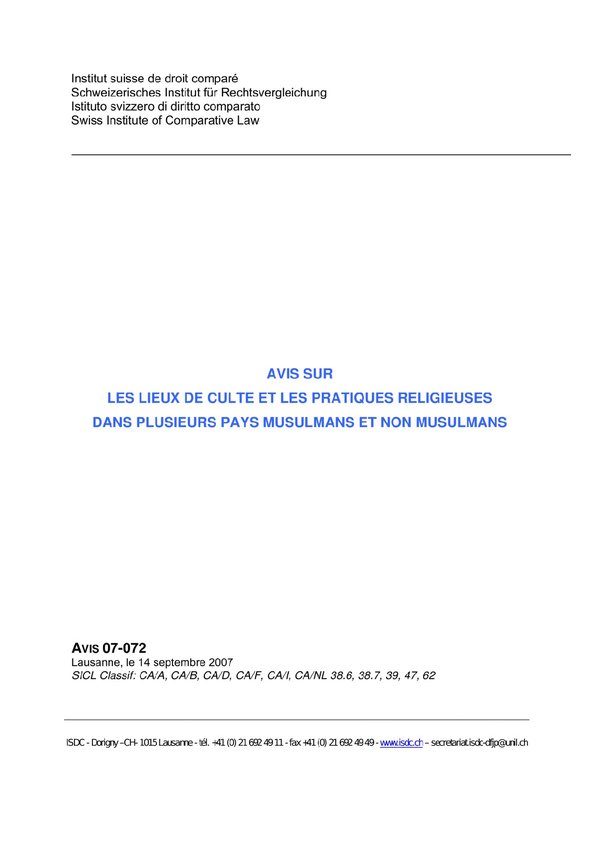 Avis Sur Les Lieux De Culte Et Les Pratiques Religieuses Dans Plusieurs Pays Musulmans Et Non
