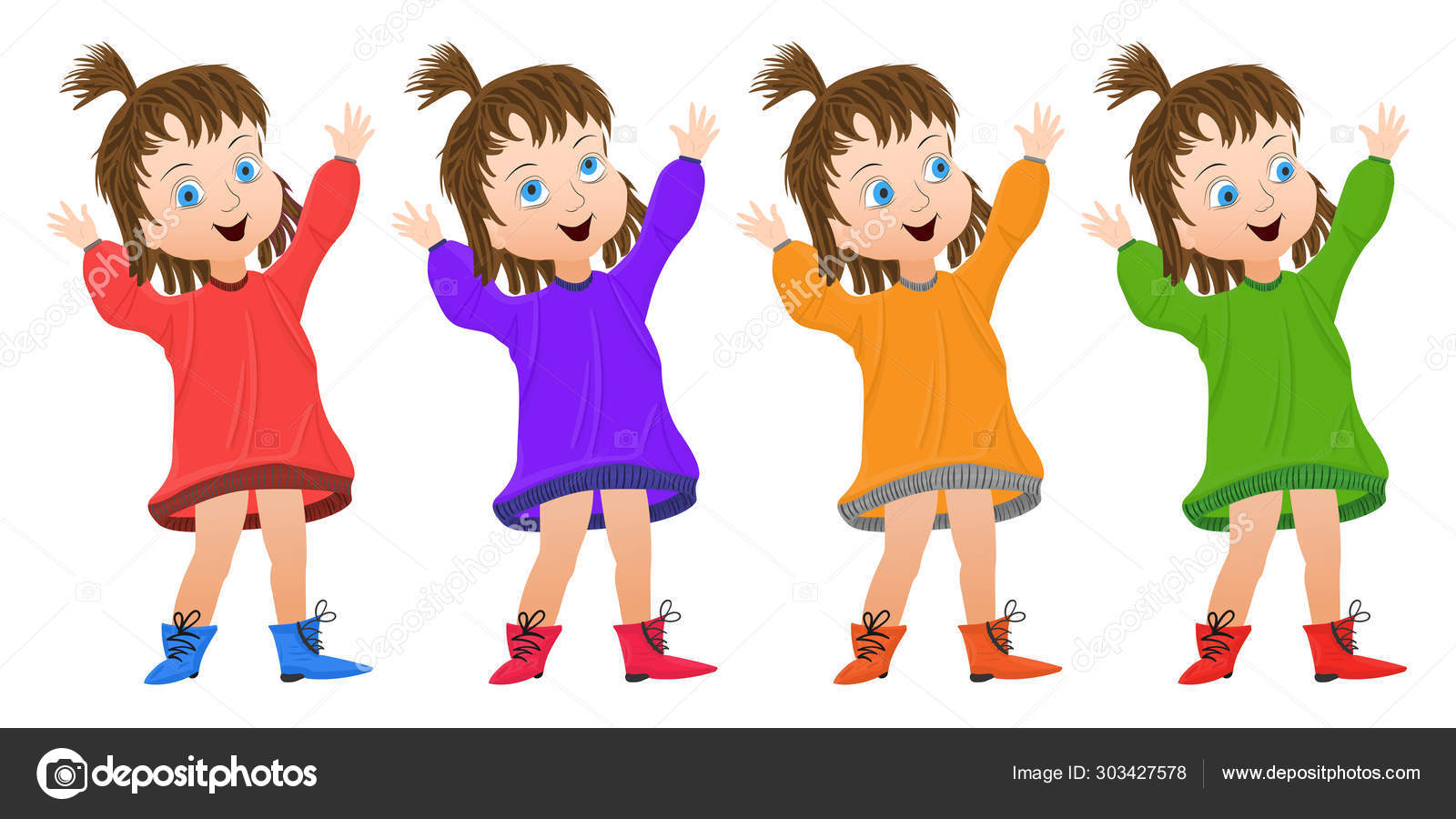 Joyeux Fille Joyeuse Dans Une Robe Des Bottes Avec Les Image Vectorielle Isuhi C 303427578