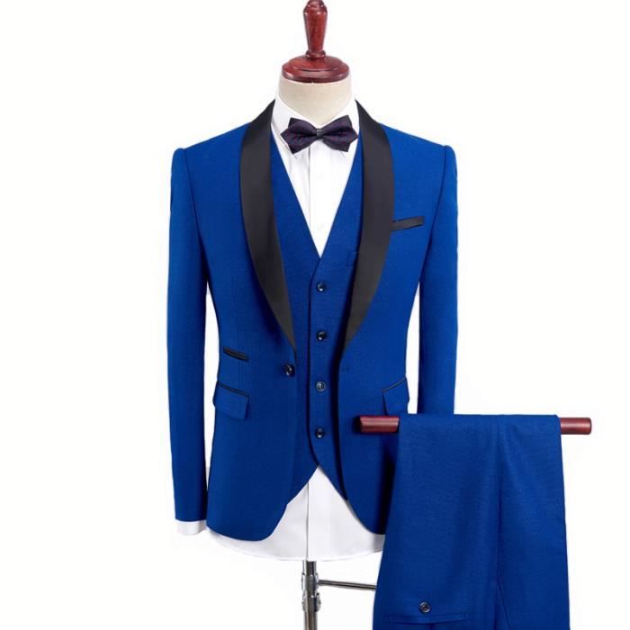 Costume Homme 3 Pieces Complet Blazer Gilet Pantalon Deguisement Tuxedo Diner Carnaval Veste De Smoking Uniforme Business Mariage Bleu Marine Achat Vente Costume Tailleur Cdiscount