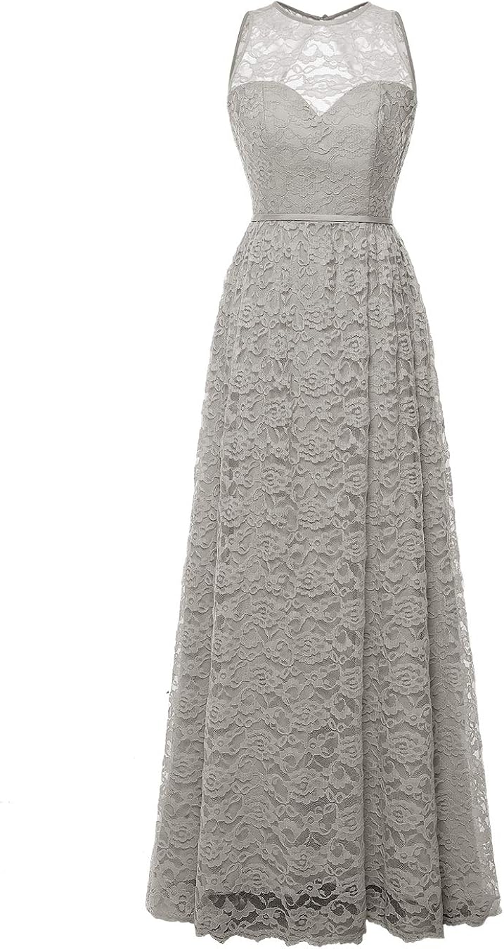 Alagirls Robe De Demoiselle D Honneur Robe Longue Femme Dentelle Pour Soiree Cocktail Gris