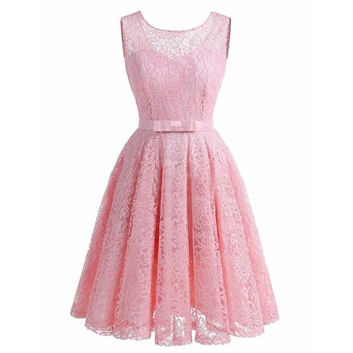 Rose Robe Demoiselle D Honneur Soiree Cocktail Mariee Col Round Dentelle Ruban De Satin Nœud Papillon Princesse Grande Taille 32 50 Rose Achat Vente Robe De Ceremonie Cdiscount