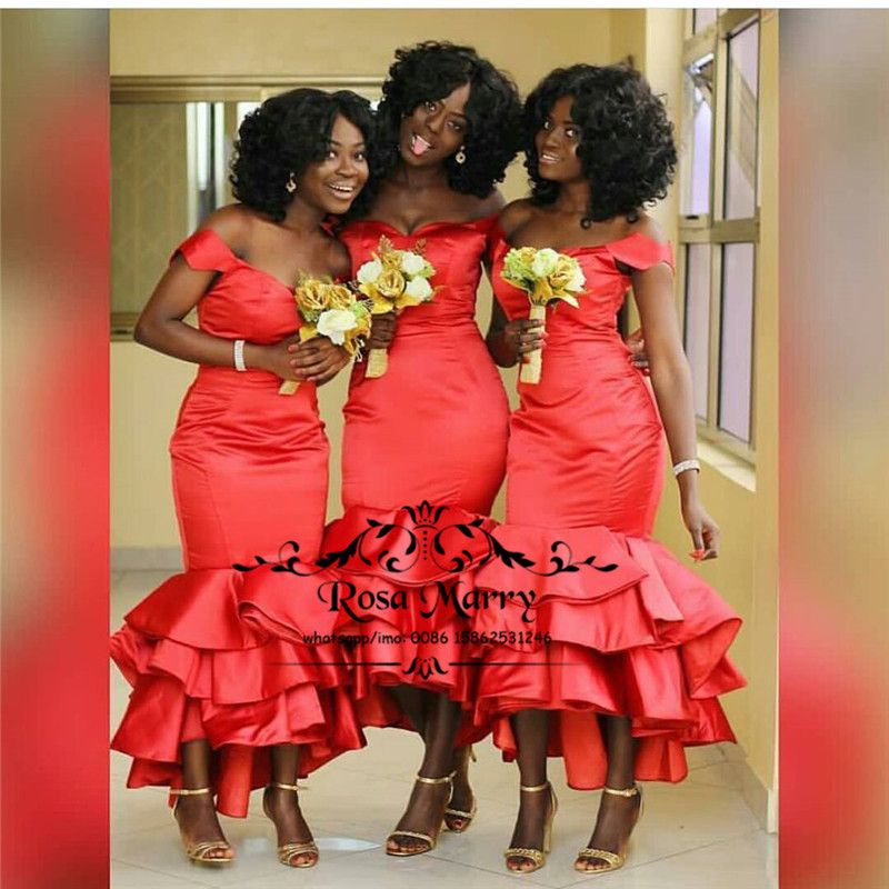 Acheter Robes De Demoiselles Dhonneur Africaines Sexy Sirene Rouge 2020 Hors Epaule Plus La Taille The Longueur Pas Cher Pays Femme De Chambre Dhonneur Cocktail Robes De Soiree De Bal De 105 62