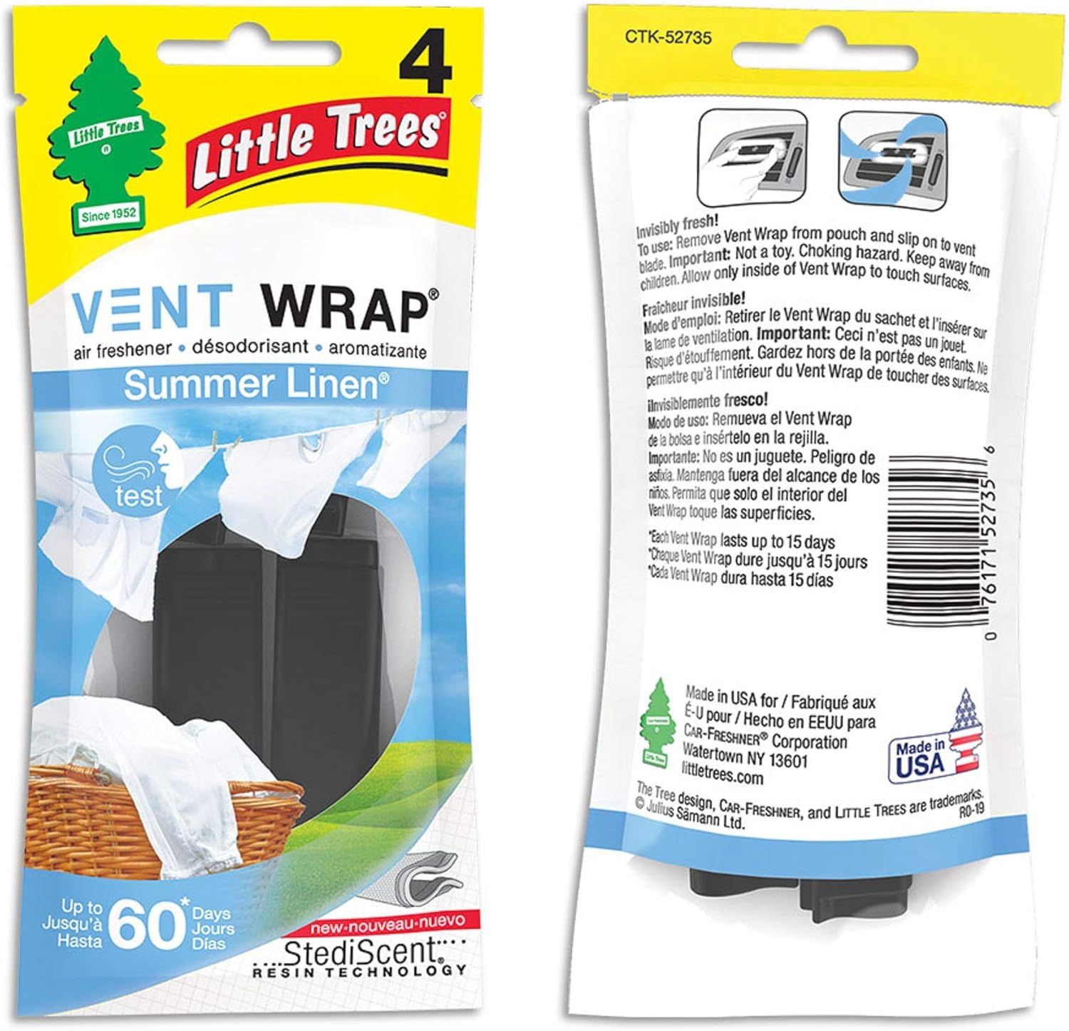 Amazon Com Little Trees Car Air Freshener Vent Wrap Provides Long Lasting Scent Invisibly Fresh Summer Linen 4 Count Pack Of 4 Automotive