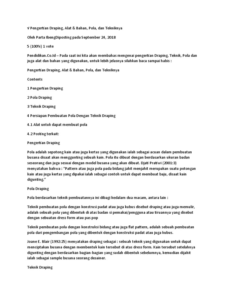Pengertian Draping Alat Bahan Pola Dan Tekniknya