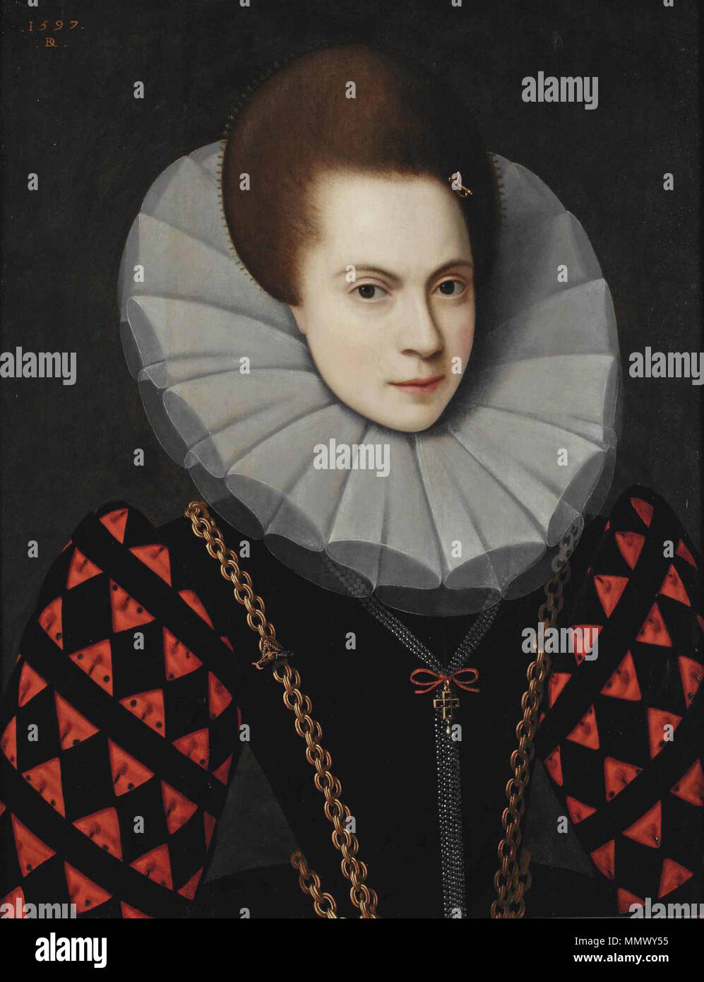 Anglais Portrait D Une Femme Dans Une Robe Rouge Et Noir Et Blanc Espagnol Ruff Avec