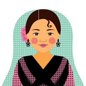 Icone Plate Vecteur De Jeune Fille Souriante En Espagnol Traditionnel Porter Petit Enfant Dans Une Robe Rouge Vif Costume De Fantaisie Pour Le Carnaval Vecteurs Libres De Droits Et Plus D Images Vectorielles