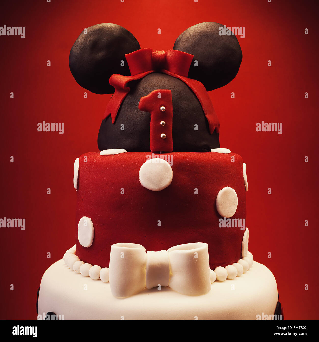 Gateau D Anniversaire Pour Bebe Fille Sur Fond Rouge De Details Et De Conception Libre Photo Stock Alamy