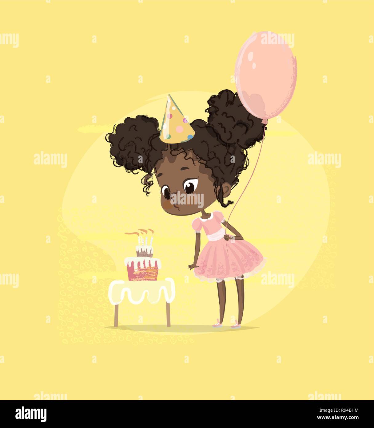 Jolie Fille Afroamericaine Coup Anniversaire Gateau Bougie Jeu De Caracteres Heureux Bambin Femelle A Robe Tenant Le Ballon Celebration Conception De Laffiche Enfant Elegant Anniversaire Party Modele Plat Cartoon Illustration Vectorielle Vecteurs