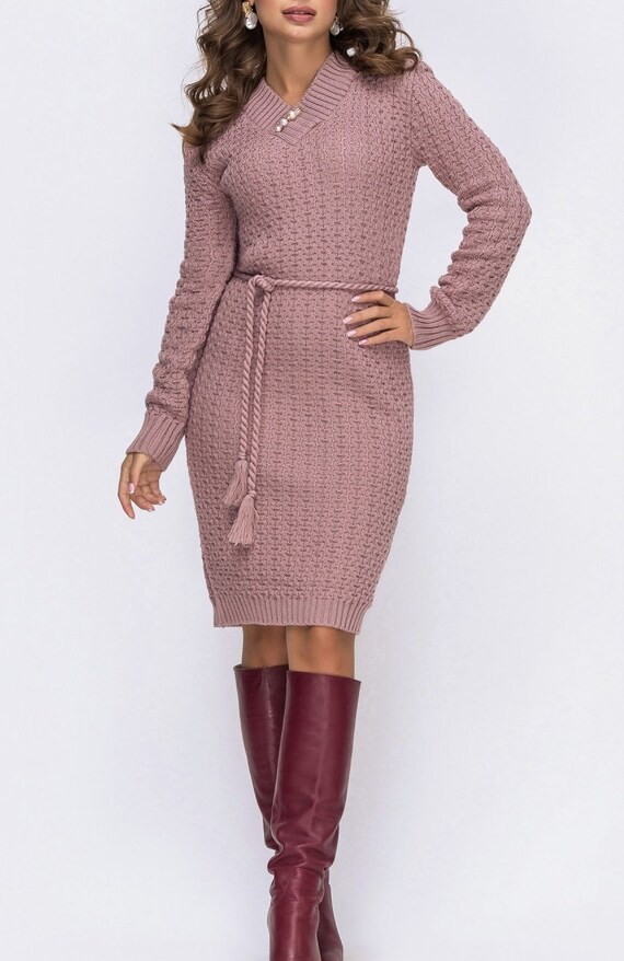 Robe Maxi Chaude Pour Femmes Poudre Hiver Tricot Robe En Laine Etsy