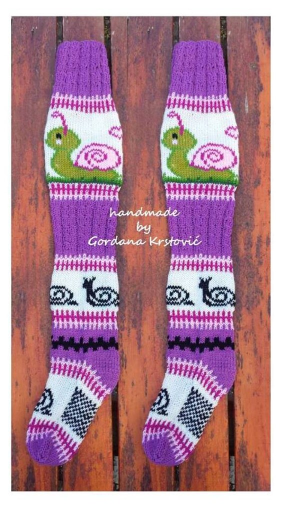 Escargot Chaussettes De Genou En Tricot A La Main Etsy