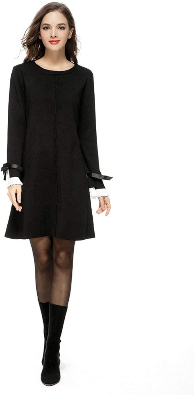 Hawiton Robe Pull Pour Femme Robe Decontractee Pour Femme A Manches Longues Robe Elegante Hiver Femme A Col Rond Col Montant A Ourlet Evase Robe Femme Grande Taille S Xxl De Couleur Pure Amazon Fr