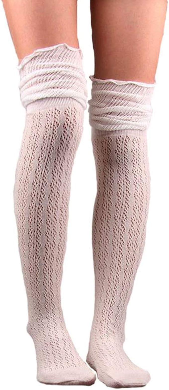 Baronhong Chaussettes Extra Longues Pour Femmes Au Bas Du Genou A Garniture En Dentelle 1 Paire Beige M Amazon Fr Vetements Et Accessoires
