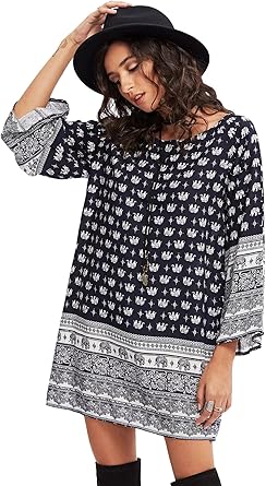 Soly Hux Femme Robe Manches Longue Fleurie Tribale A Col Rond Robe Avec Manche Raglan Imprime Au Genou Robe De Plage Vacances Polychromie M Amazon Fr Vetements Et Accessoires