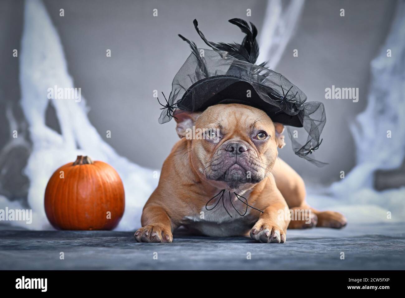 Le Chien Drole De Roquet S Est Habille Pour Halloween Avec Le Panier D Araignee Et De Potiron Photo Stock Image Du Panier Roquet 102007460