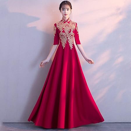 Robe Longue De Banquet De Soiree Elegante En Dentelle Doree Brodee Robe De Soiree De Fiancailles Robe De Soiree L F Amazon Fr Bricolage