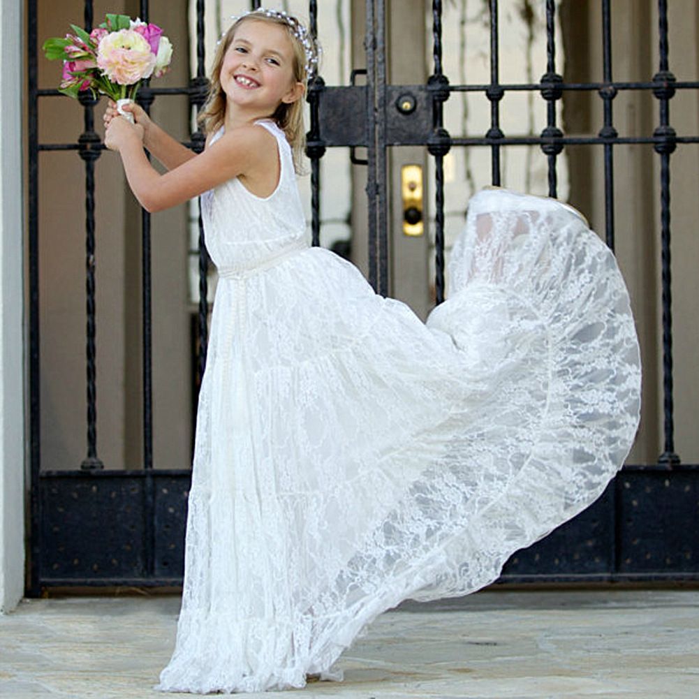 Acheter Robes De Fille De Fleur En Dentelle 2019 Long Junior Robe De Demoiselle Dhonneur Jardin De Boheme V Cou V Dos Real Modele Premiere Communion Robe Pour Les Petites Filles De