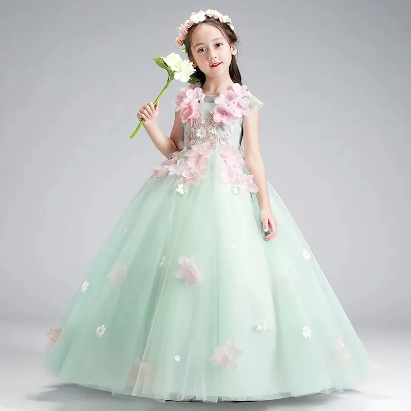 Robe De Princesse Pour Filles Tenue De Soiree Elegante Motif Floral Rose Vert 3 8 12 Pour Fete D Anniversaire Nouvelle Collection 2020 Aliexpress
