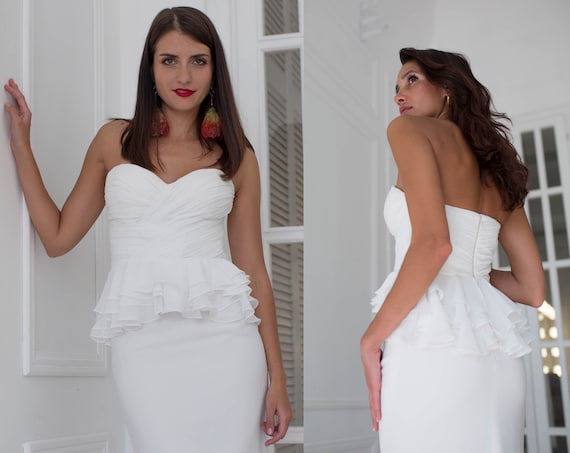 Top Mariage Avec Peplum Asymetrique Separe De Mariage Etsy