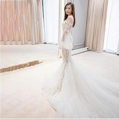 Robe De Marier Profond Col En V Robe De Mariee Longue Dentelle Sirene Robe Nuptiale Longue Traine Taille Empire Mariage Robe De Soiree Robe D Ete Amazon Fr Vetements Et Accessoires