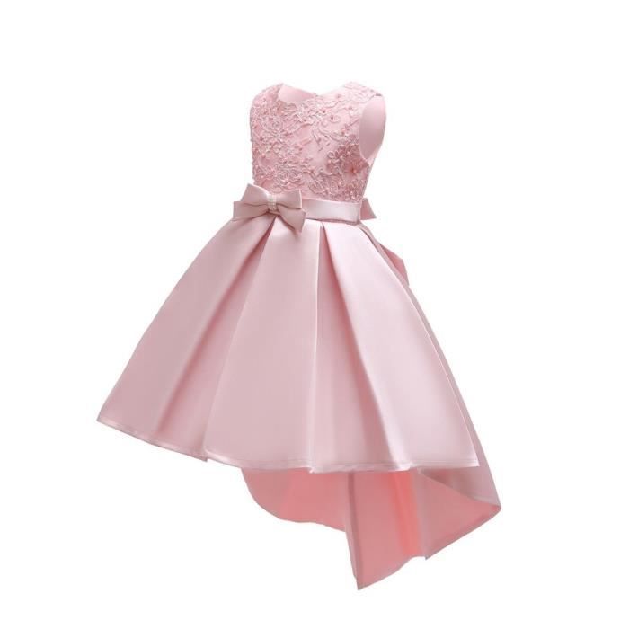Emilie Mariage Robe De Princesse Fille En Satin Traine Irreguliere Robe De Demoiselle D Honneur Pour Mariage Rose Achat Vente Robe Cdiscount