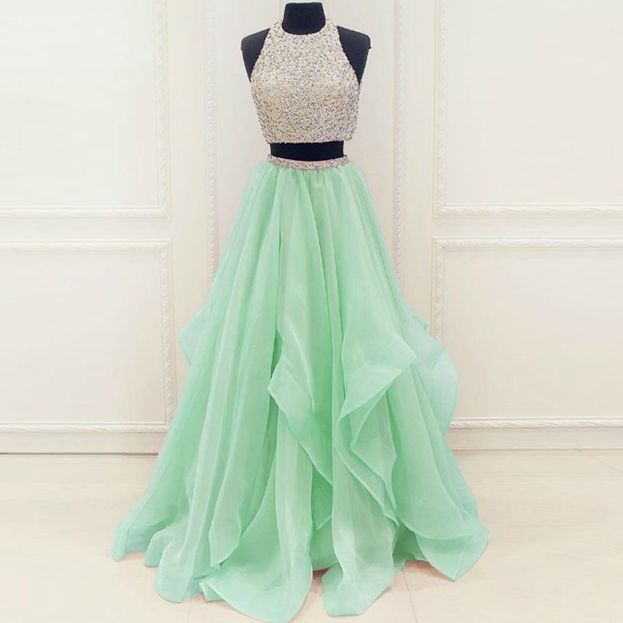 Acheter Menthe Organza Volants Cristaux Perles Paillettes Deux Pieces Robe De Bal De A Ligne Decoupe Dos Robes De Soiree Long De 97 68 Du Everlastinglovedress Dhgate Com