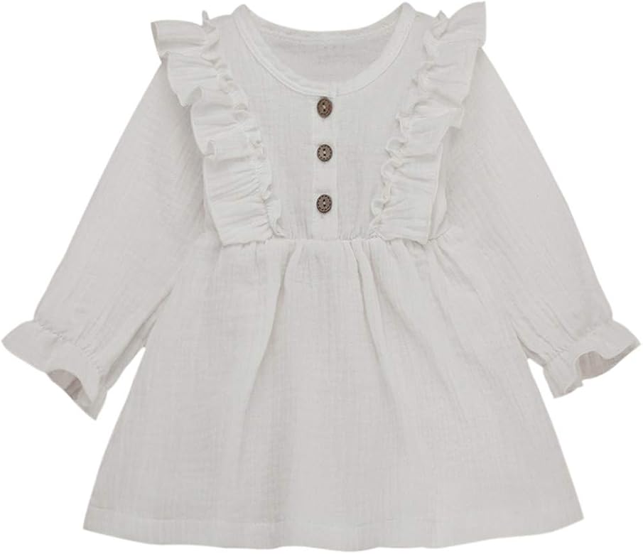 Qinngsha Robe De Princesse En Coton A Manches Longues A Volants Floraux Pour Bebe Fille Robes Bebe