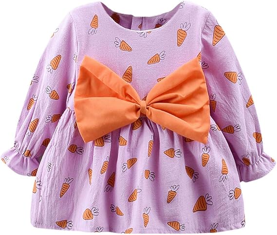 Robe A Volants Pour Bebe Fille Imprime Carotte Manches Longues Nœud Sur Le Devant Amazon Ca Vetements Et Accessoires