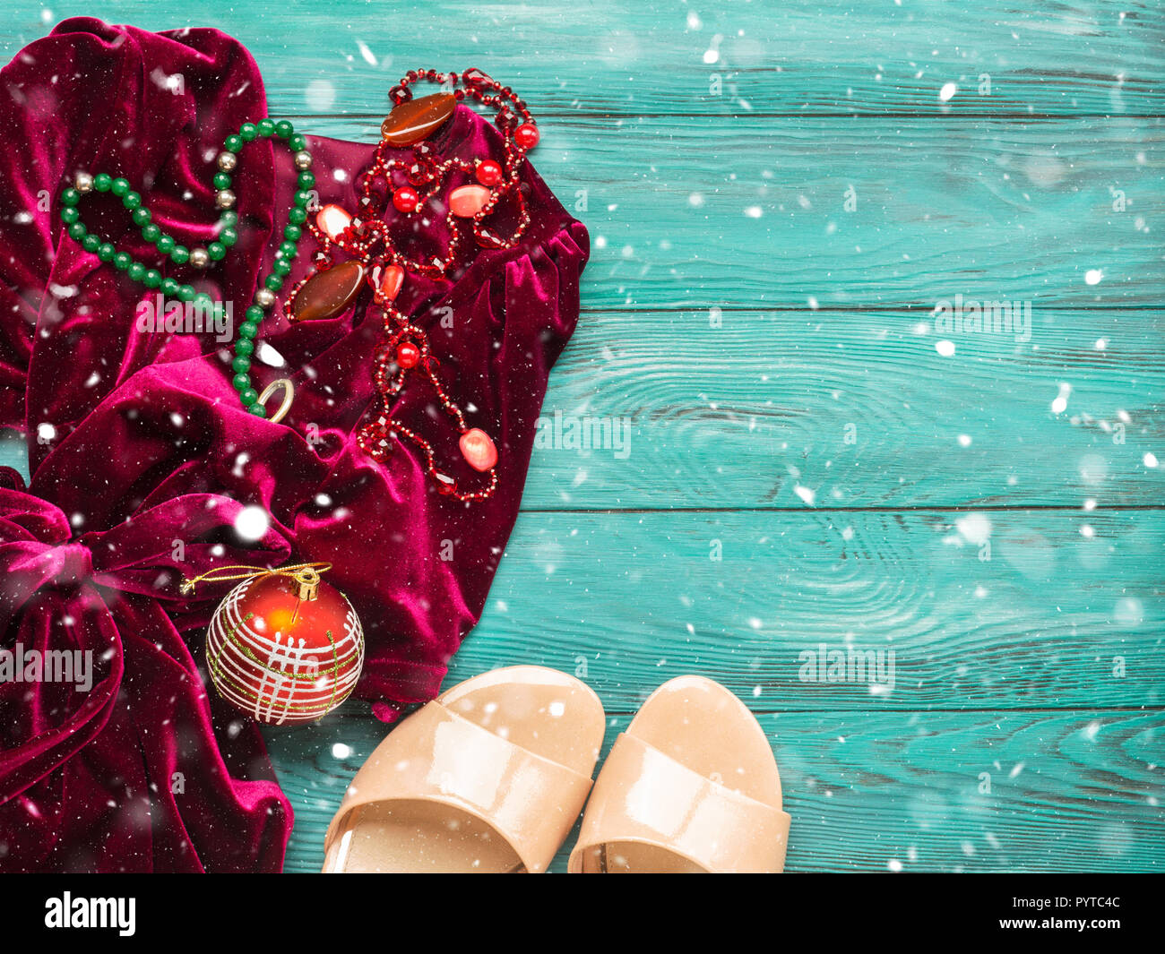Robe En Velours Rouge Pour Noel Fete Du Nouvel An Decorations Accessoires De Mode Arriere Plan Dressing Up Concept Photo Stock Alamy