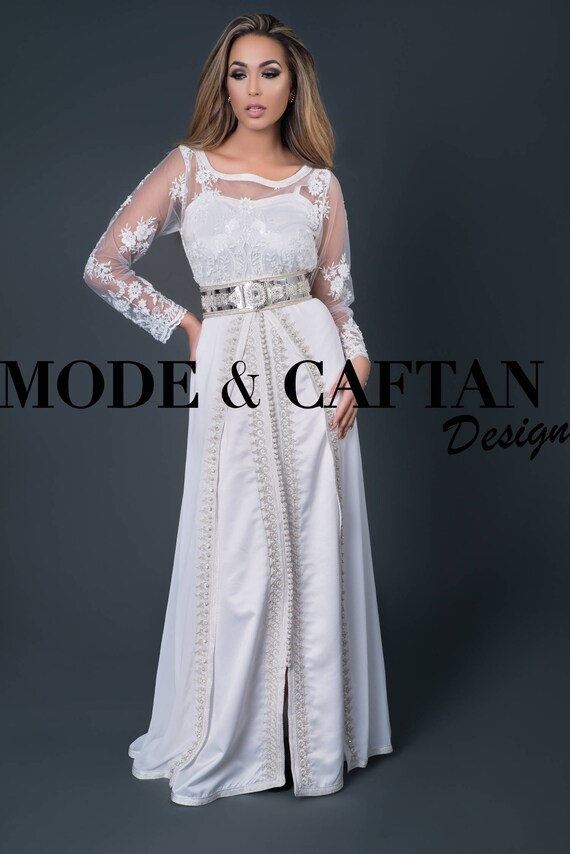 Kaftan Morrocan Perle White For Oriental Wedding Henna Etsy