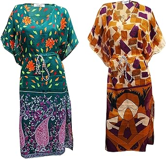 Peegli Robe De Caftan De Plage Pour Femmes Vert Ete Mode Coupe Ample Coupe En Soie Melangee Style Vintage Bandhani Imprime Caftan Robe Courte Amazon Fr Bienvenue