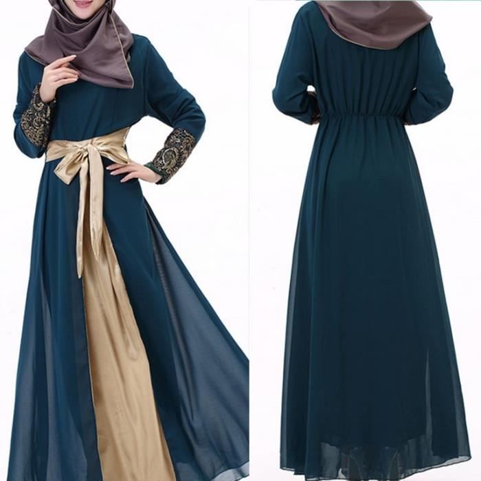 Robe De Soiree Mousseline Caftan Marocain Coule Bleu Achat Vente Robe De Ceremonie Cdiscount