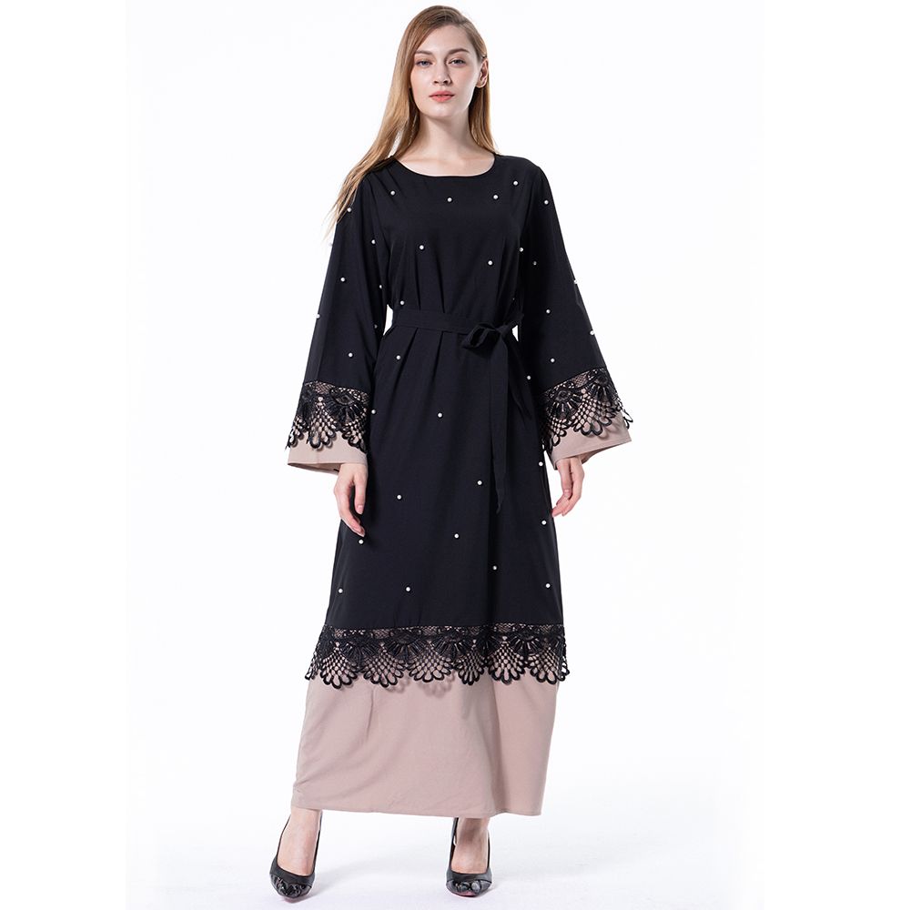 Acheter Prix De Gros En Gros Les Femmes Musulmanes Patchwork Dentelle Caftan Robe Plus La Taille Femmes Islamique Robe De Priere S 5xl De 21 01 Du Themuslimdress Dhgate Com
