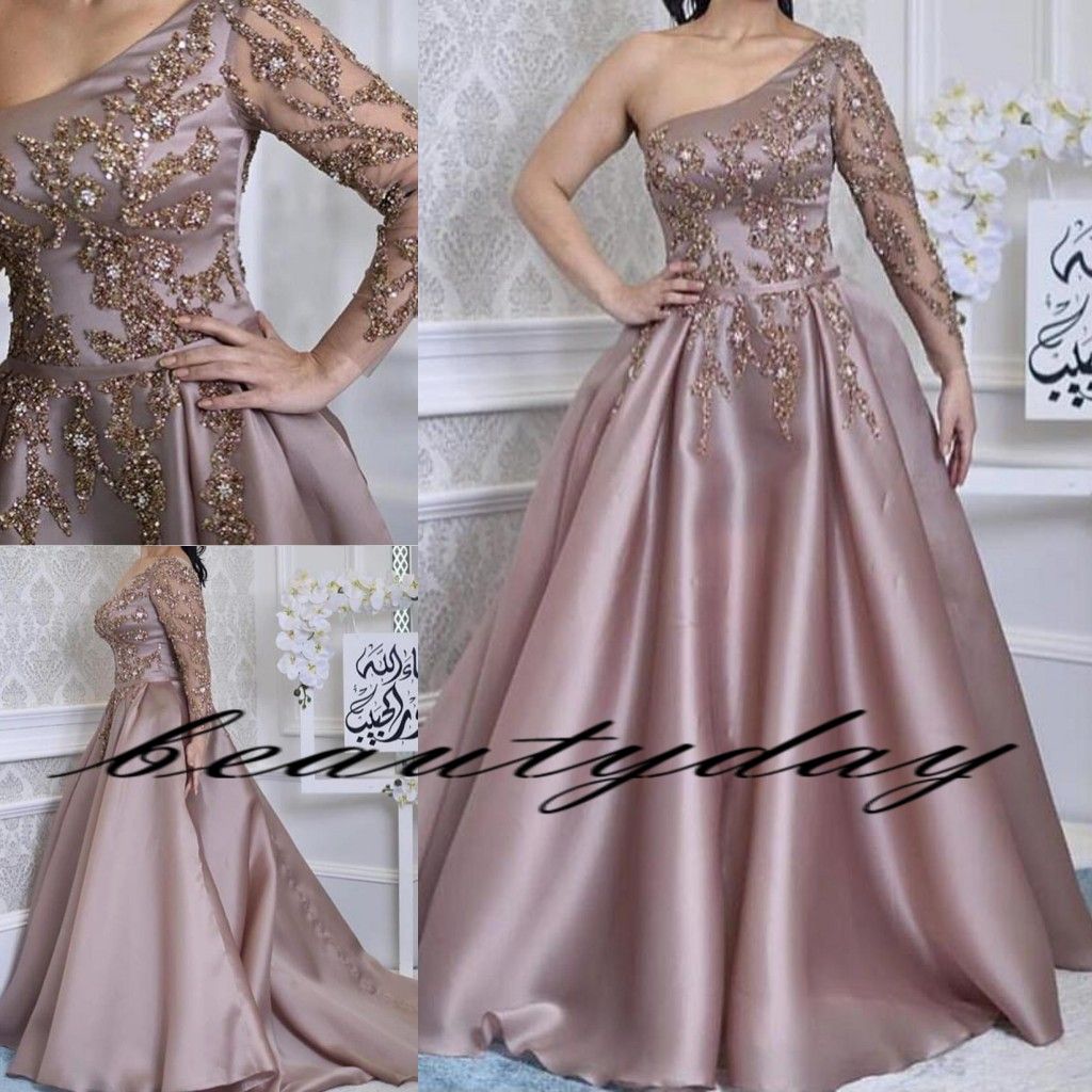 Acheter 2019 Blush Simple A Manches Longues Robes De Soiree Pour Les Femmes Portent Robe De Bal Perles Cristaux Moyen Orient Dubai Caftan Musulman Arabe Robes De Soiree De 123 21 Du
