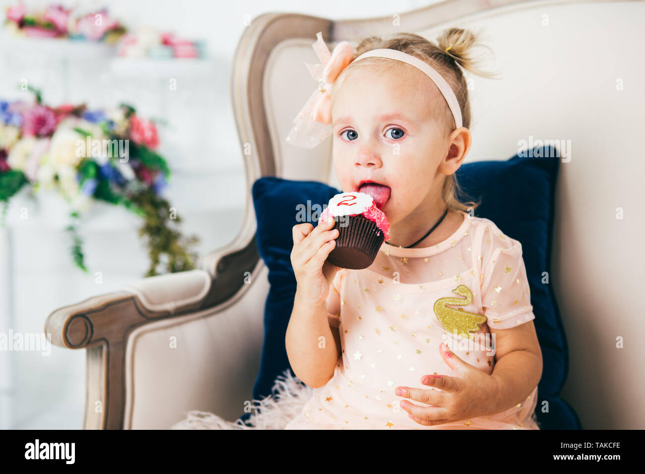 Le Theme Est Un Dessert Sucre Gateau Avec Le Symbole Numero Deux Pour 2 Anniversaire De