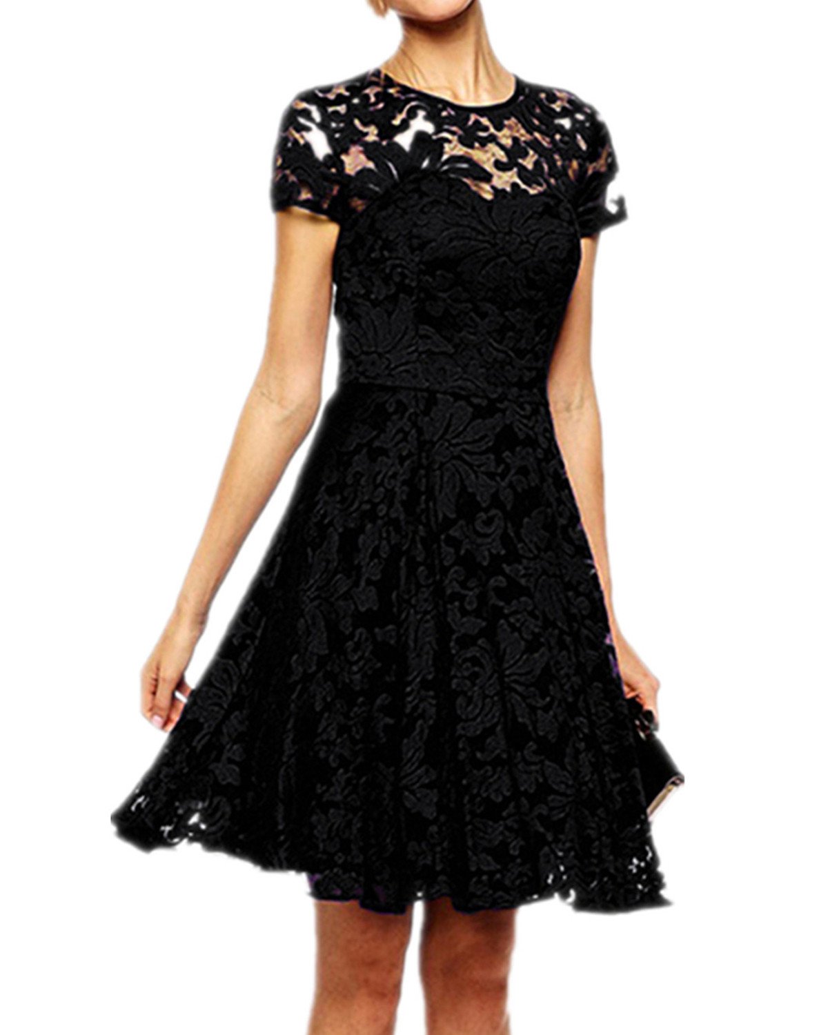 Blustercool Robe De Soiree Femme Automne Chic Ceremonie Mariee Manches Longues Robe De Cocktail Pour Mariage Robe Femme Sexy Mini Courte Robe Dentelle Florale Col V Robes Cocktail Noir Xxl Amazon Fr Vetements
