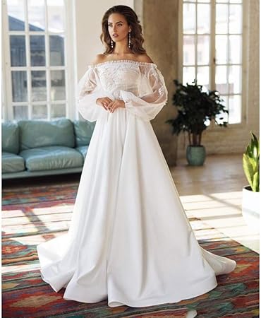Gosvet Robe De Mariee Ivoire A Ligne Robe De Mariee Appliques Hors De L Epaule Manches Bouffantes Robe De Mariee Amazon Fr Cuisine Maison