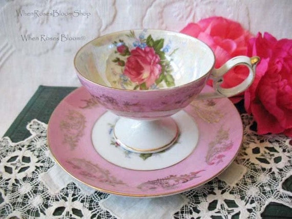 Vintage Tea Cup Footed Royal Halsey Japan Pink Rose Gold Etsy