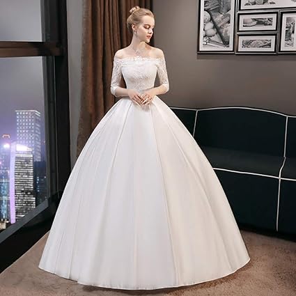 Wfl Robe De Mariee Mariee Princesse Mariee Mot Epaule Satin Simple Qi Femme Mince Blanc Xxl Amazon Fr Sports Et Loisirs