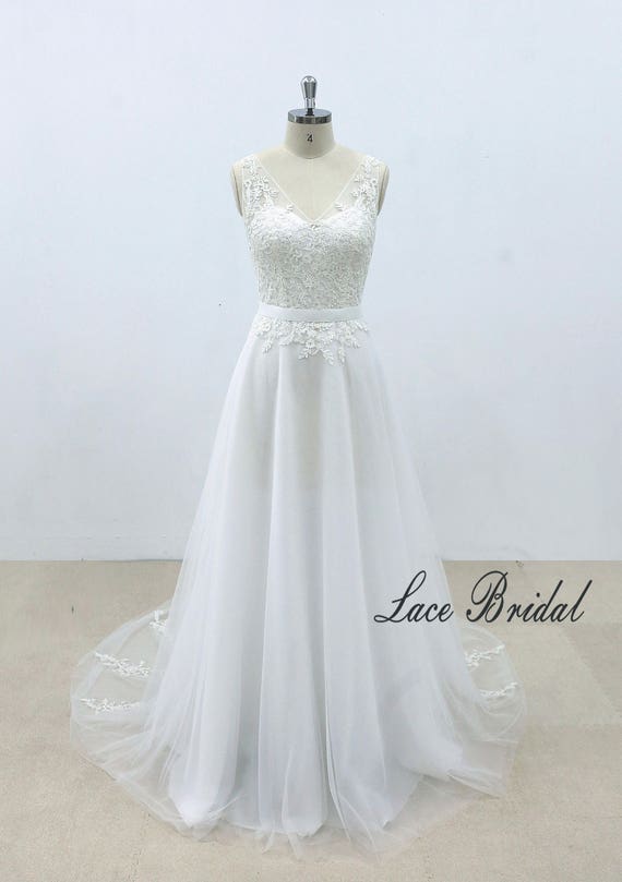 Plongeant V Dos Sexy Robe De Mariage Tulle Aere Mariage Robe Etsy