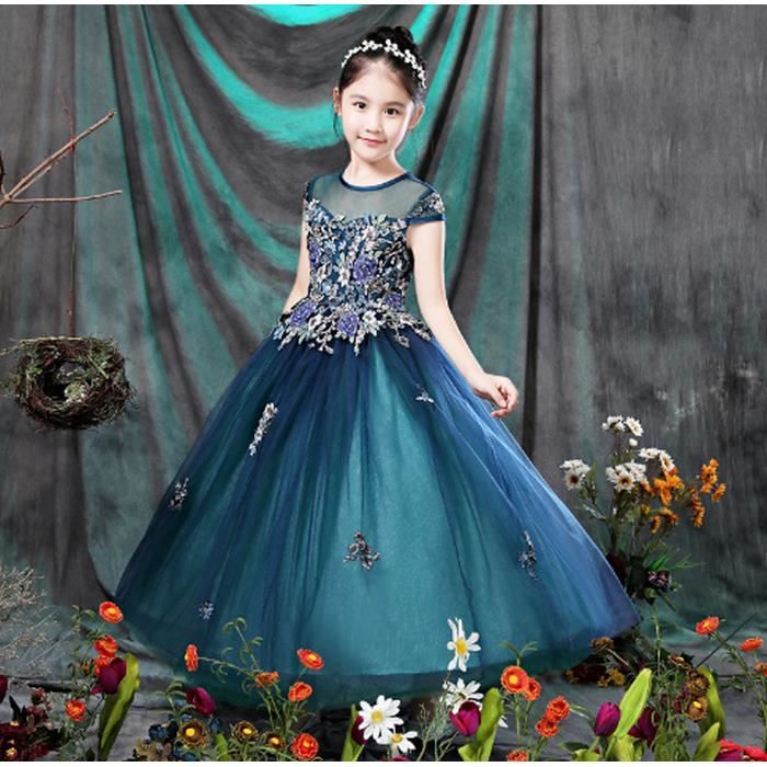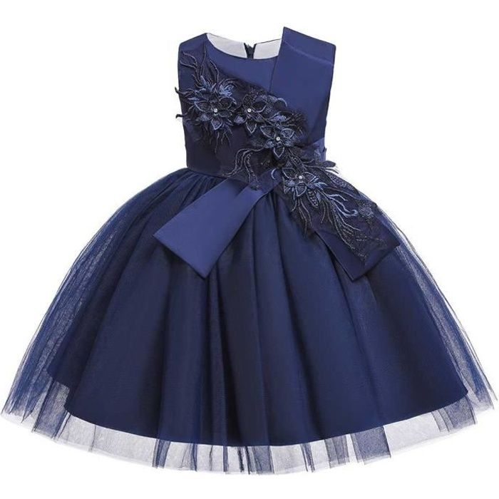 Robe De Fete Tulle Robe De Soiree Enfants Fille Dentelle Fleur Princesse Costume Robe De Mariee Bleu Fonce Tu Achat Vente Robe De Mariee Cdiscount